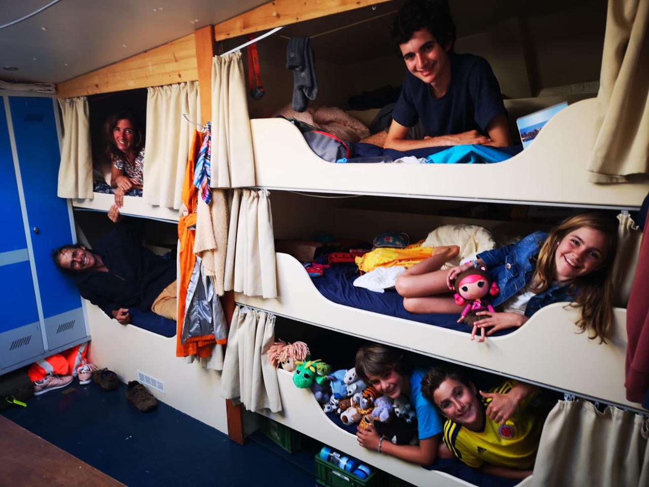 Het bemanningsverblijf in het voorschip is ingericht door een paar zeer getalenteerde vrijwilligers. Het beschikt over 10 kooien, een kastje per persoon voor persoonlijke spullen, een douche (koud water) en een toilet.